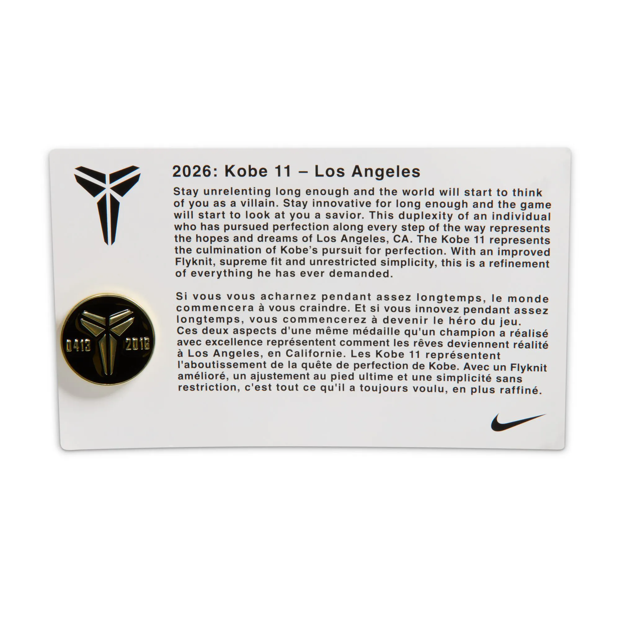 Arriving during Kobe’s final season, the low-cut Kobe 11 distilled his signature legacy to its essence: high performance, lightweight and sophisticated. The Kobe 11 Protro keeps those same ethos, but pushes them forward in true Mamba fashion. Kobe’s famed Flyknit upper is reinforced with TPU in targeted areas for strength while preserving minimal weight. The ReactX drop-in midsole combines with a heel Air Zoom unit, delivering flexibility and responsiveness. And the outsole features a game-breaking traction pattern, keeping with Kobe’s longstanding obsession with revolutionizing traction on the court.