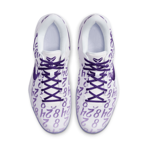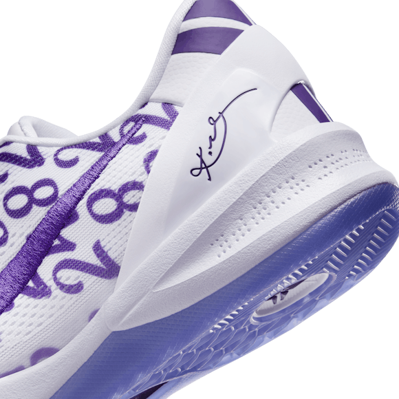 Kobe is the only player in NBA history to have two retired jerseys on the same team. He got there via unending focus on the game, and the Kobe 8 Protro is inspired by his offseason flow. Numbers 8, 24, and 2—the jerseys worn by Kobe and his daughter Gianna—repeat boldly across the mesh upper. The arched midfoot plate brings added support and stability, making the Kobe 8 Protro a mainstay at all levels of play. The design is finished off with an embroidered Swoosh logo, Kobe's signature, and his iconic "Sheath" logo to honor his legendary mindset and continuing legacy.